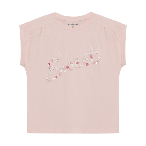 View full detailsCute cotton t-shirt from Minymo in bush with short, turned-up sleeves that are sewn on and a decorative wrinkle effect at the shoulders. The T-shir...