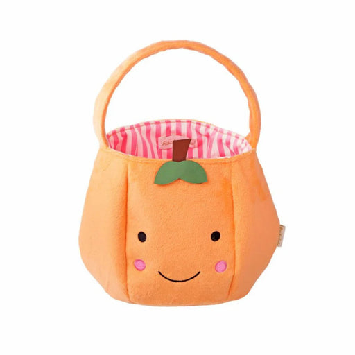 View full detailsThe little pumpkin bucket bag is made in the softest bright orange velvet with an embroidered face, rosy cheeks and a little stalk and leaf! This b...