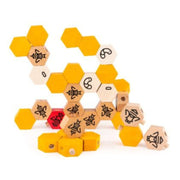 The Hive is a set of 30 wooden blocks introducing the genius of the bee family. Hexagonal-based blocks teach how the honeycomb is built, but are a door to the fantastic bee universe hidden in the hive. Blocks have different colours and prints representing honey, worker bees, eggs, larvae, drones and the queen.