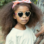 A gorgeous glittery gold heart frame with jelly pink arms - totally cool! Designed to protect little eyes from the sun, each pair comes with a protective cotton case and offers full UV protection.