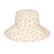 Stay protected from the hot summer sun in this very cherry sun hat! Fully reversible with the sweet, bright cherry print on one side and a brown striped fabric on the other. With a wide brim for extra shade and featuring a fun frill trim, it is a totally practical hat for cherry picking or a summer picnic!