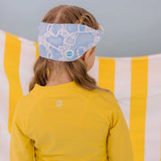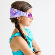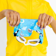 Splash Swim Goggles features a tangle-free, patent-pending strap in fun colour prints with a white frame and lightly tinted blue lenses.