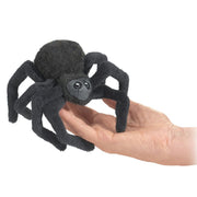 Arachnophobes won't mind the whimsical Mini Spider finger puppet. Featured in all black, this not-so-scary creature has gangly long legs, a bulbous abdomen, and fangs on a leatherette face with big beady eyes.
