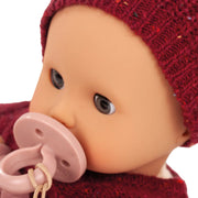 A beautiful doll for the 75th anniversary. Muffin Baby Jubilee wears an elegant bordeaux-red knitted onesie with stylish buttons and a matching hat. Her look is completed with a cute pacifier chain and a pacifier. This anniversary edition is truly something special and perfect for little doll lovers. An unforgettable gift, not just for special occasions.