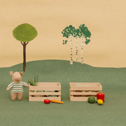 A sweet and cozy playset for imaginations to run wild. This cute Baby Pig is cuddled in its wooden box with cozy bedding, making a wonderful addition to any story. Add the bigger pigs to expand the playtime! It is a dear friend to all the other animals in the popular Maileg soft friends category.