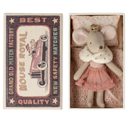 Maileg Princess Little Sister Mouse in Box, Rose is a classic Maileg item. This mouse is ready for hours of play and sleeps tight in a little matchbox. The clothes and bed linen come in unique prints and beautiful colours. Bed linen may vary in colour.