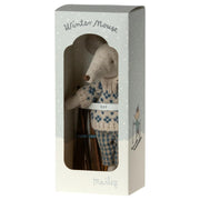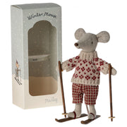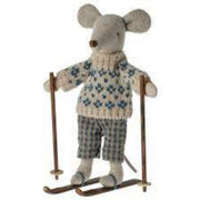 A mouse ready for hours of fun on the slopes during the cold wintertime. Each Maileg Winter Mouse with Ski Set contains a warmly dressed mouse with skis and poles. A funny detail is the ears, which are made so they look like the mouse is wearing ear warmers.
