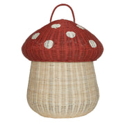Shaped like a toadstool plucked straight from a fairy tale, the Mushroom Storage Basket is a storage solution disguised as decor. Handwoven from 100% natural rattan, it features a roomy base and a bold red domed lid, with white spots and is finished with a handy little loop for easy lifting.