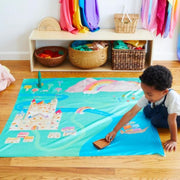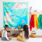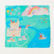 The Rainbowland Playmap is made from gorgeous, heavyweight, 100% pure mulberry silk and printed with non-toxic, earth-friendly dyes. It features a gorgeous, hand-painted Mini Playsilk, depicting a vibrant rainbow scene - perfect for your child's small world and imaginative play.