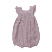 Organic Muslin Smocked Front Overall Shortie, Lavender
