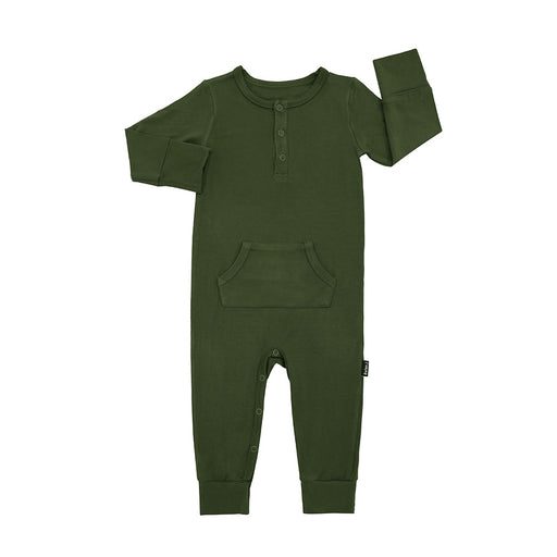 Belan JBamboo Longsleeve Pocket Romper by Belan J. featuring a henley neckline with snaps and a kangaroo front pocket. Snaps at the inseam allow for quic...