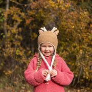 The Forest Kids' Toque is a warm and cozy earflap style toque with tassels and an extra set of ears (antlers too!).
