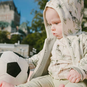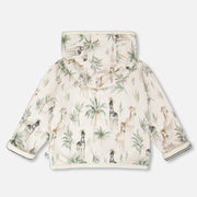A jacket that flips from playful to practical, this organic cotton jersey reversible hooded jacket beige with zebra jungle print is a true wardrobe favorite for your little ones. One side shows off a lively allover zebra jungle scene, while the other keeps it classic with timeless stripes. Designed in soft and stretchy organic cotton jersey, it’s finished with a cozy hood and front snap closure for easy everyday wear.