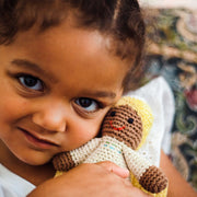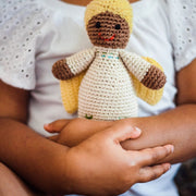 This Organic Cotton Angel Rattle in soft cream yellow brings warmth, comfort, and representation to baby's first holiday or everyday play. Hand-crocheted with organic cotton, this sweet and gentle rattle is perfect for thoughtful gifting and inclusive nursery displays.