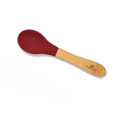 - The bamboo baby spoon features an ergonomically designed handle. The spoon fits adult hands but makes self-feeding a snap for the baby. And the spoon's soft silicone tip is gentle on tender gums.