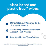 • Plant-based and plastic-free wipes maintain the same purity, with just two carefully selected ingredients: 99.9% ultra-purified water and a drop of fruit extract.
