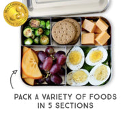 - 5-compartment bento box designed to hold a wide variety of foods.