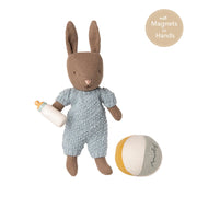 The Rabbit Set, Micro with Magnet Hands is a perfect gift set to start hours of storytelling. It contains a small ball, a micro-sized soft rabbit with magnets in its hands to hold the baby bottle. All fitted nicely together and made for a great start of any rabbit/bunny collection.