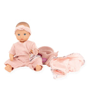 - Set includes a Baby girl bath doll, summer outfit, bath towel, bottle, potty, headband and pacifier.