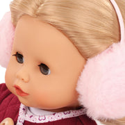 The sweet Muffin Jubilee baby doll is celebrating its 75th anniversary. She wears warm plush ear warmers on her blonde bob, paired with a quilted Bordeaux onesie and cozy winter boots. Her pacifier is held by a cute silicone bead pacifier chain. This anniversary edition is a real eye-catcher and perfect for little doll lovers. A loving gift, not just for special occasions.