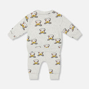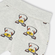 He will love the adorable look and cozy feel of this Organic Cotton Long Sleeve Top and Evolutive Pant Set Heather Beige With Printed Big Dog. This two-piece set features a comfy long-sleeve top with a crew neckline, drop shoulders, and buttons on one shoulder. It's paired with a matching pull-on pant with a foldover waist, folded cuffs, and an allover puppy print.