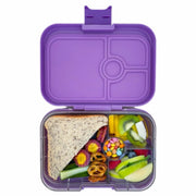 Yumbox Panino is the same compact size but holds more food for growing kids and adults. It’s perfect for school, work and weight-conscious lunches. Prepare balanced healthy meals in minutes!4-compartment food tray (illustrated) - Yumbox is a kid-friendly, bento-style container that fits easily into YumboxPoche or Classic Lunch Bag. The Yumbox is made out of two pieces, an exterior box and a tray insert that fit together to provide a LEAKPROOF solution for wet foods like yogurt, and applesauce (not water). Pack wet foods like yogurt and dips (not water). Purchase an extra tray for more variety