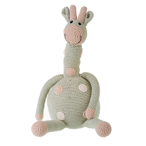 Pebble ChildSay hello to this friendly Giraffe. Pebble Child Organic Teal Giraffe, Large, is hand-knitted in 100% cotton yarn. She has a teal body and cream do...