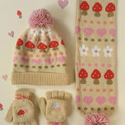 Add a touch of Alpine magic to any cold wintery day with these Alpine Fairisle Knitted Gloves. Adorned with a bright red toadstool and sweet embroidered flowers, these fingerless gloves have a fleece-lined cap which can be secured with a button when not in use and an enclosed thumb.