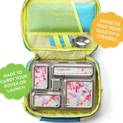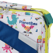 PlanetBox - Launch + Rover Carry Bag is made from 100% recycled polyester fibre and an easy-wipe main compartment. Built to carry Planetbox Launch and Rover lunchboxes, water bottle and additional containers or snacks for an easy grab-and-go as you're headed out the door.
