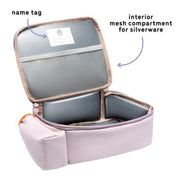 The Uninni Cotton Toddler Lunch Bag will keep food fresh for hours in the fully insulated, zippered main compartment designed to fit a variety of kids' bento boxes, including Yumbox Panino and Original, Lunchbots and Shuttle Planetbox and Rocki Bento boxes.
