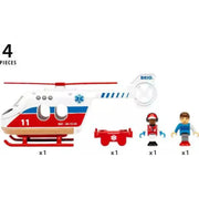 - Rescue Helicopter includes 4 pieces; 1x Rescue Helicopter, 1x Pilot Figure, 1x Patient Figure, 1x Stretcher Accessory.