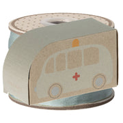 The design of this little wooden ambulance is simple. The car is made of solid wood and has a pull-back function. Mix and match the different cars and buses for the never-ending story to begin.