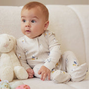 This totally adorable Easter footed sleeper with an Egg Hunt print is made from the softest organically grown cotton rib, keeping them at just the right temperature through the night. The two-way zip down the front means diaper changes can be done without removing the whole suit, so they can quickly fall back into the hoppiest of dreams.