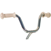 - Height-adjustable chrome-plated handlebars and powder-coated frame/footboard made of steel. Stylish and ergonomically engineered plastic seat; solid anti-puncture wheels, coloured pedals on the front wheel, and a nice rear footrest.