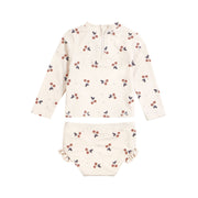 Long Sleeve Two-Piece Swim Set, Cherries on Crème