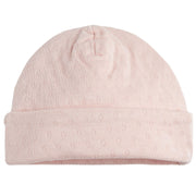 This adorable pointelle knit hat has the perfect snug fit for the newest family member. Made from soft-as-butter organic cotton, the hat keeps them at the perfect temperature while heading into the big open world in the stroller. Perfect for gifting to expecting parents, a matching sleeper is available in the same range.