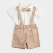Poplin Shirt + Suspender Short Set with Bowtie