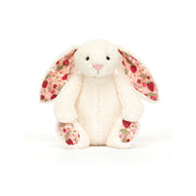 Blossom Cream Bunny has been berry picking in the fields. In iconic cream Bashful fur, Blossom Cream Bunny has soft cotton ears and feet, printed with an original Jellycat design of juicy strawberries and cream flowers on a pink backdrop. Bringing the joy of summertime to you all year long!