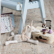 This off-white Unicorn from Maileg is made of beautiful soft fabric with a harness on the back. Ready to start the adventure of a lifetime? It can play with other Maileg Soft Friends.