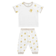 Nest Designs Bamboo Short Sleeve Capri Play Set is perfect for lounging, cuddling, and playing on a lazy Sunday morning. This 2-piece set is made of rayon from bamboo, which is breathable and naturally moisture-wicking - helping the on-the-go toddler stay comfortable and dry in any weather. The short sleeve play set is made with a looser fit than Nest's PJs, is naturally hypoallergenic, and feels buttery soft - making it perfect for little one’s with sensitive skin.