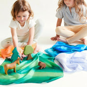 - Open-ended play with Mini Playsilks allows children to express their imagination and support their independence.