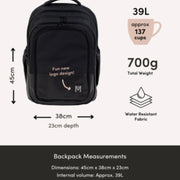 - Dimensions: 45cm H x 38cm W x 23cm D, Internal volume: Approx. 39L, Weight: Approx. 700g