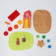 Grimm's invites everyone to experience a connection with nature and introduce your child to nature-based play. This set encourages your child to take the toys outside and to take objects found outside and integrate them into play. Nature is a great playground and offers wonderful play material!