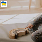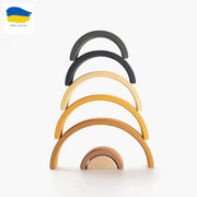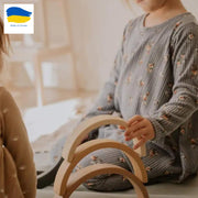 • With an arch, stacker child develops coordination and hands fine motor skills. Smaller children first play with it like a puzzle: they learn the sizes and try to assemble a full rainbow from 7 arches. Later, the child learns colours and notions of "bigger" and "smaller" / "taller" and "shorter" / "wider" and "thinner" etc.