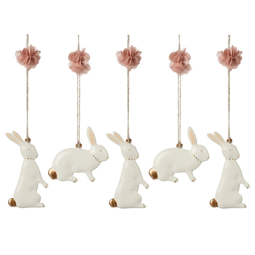 Easter bunny ornaments in metal with hand-painted details and a soft rose pompom on the silver ribbon. Hang them beautifully on a branch as decorat...