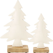 This White Enamel Table Top Evergreen on Wood Base is the perfect addition to any home. The white enamel top is durable and sleek, while the wood base provides a natural, rustic look. The combination of materials ensures a timeless and elegant piece designed to last.