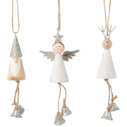 Wood Body Mini Angel, Santa + Reindeer Ornaments