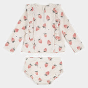 Strawberry Print on Crème Long-Sleeve Rashguard Set