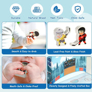 - Interactive Play: engages children in interactive play with 11 wooden figures representing key roles in a baseball game