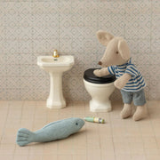 A small sink that fits the Little sister/brother mice. It fits perfectly into the bathroom in the <SuitCasa mouse house. Add to your play theme with other coordinating pieces from our Maileg Mice Collection